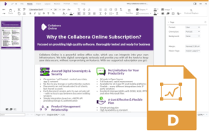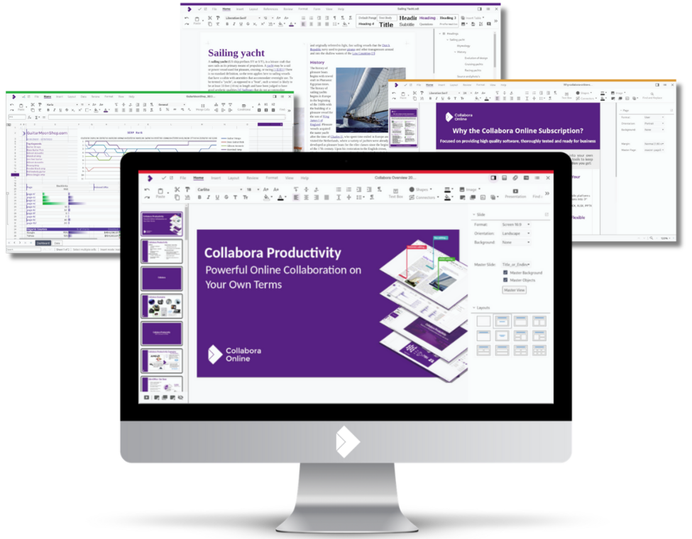 Collabora Online supports all the main applications offered by the desktop counterpart, including “Writer” (in MS Office terminology: “Word”™) for text documents, “Calc” (“Excel”™) for spreadsheets and calculations, “Impress” (“PowerPoint”™) for presentations and posters and a tool for creating flowcharts, vector, and pixel graphics called “Draw”. In Collabora Online, all four applications can be used collaboratively together with others, online in the browser, without any further software necessary and across various devices.