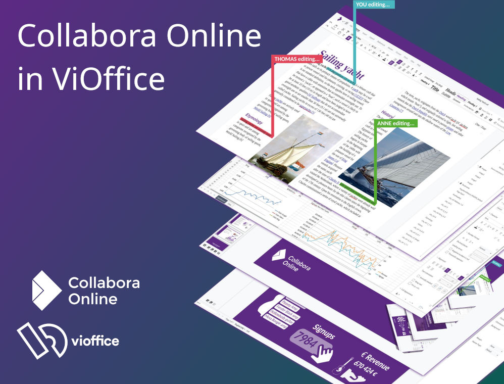 Almost right from the start of ViOffice, we have been a proud partner of Collabora, enabling us to give customers easy, affordable and quick access to state-of-the-art office document collaboration in the Free and Open Source world. Collabora has been an important pillar of the development of the underlying LibreOffice codebase, contributing roughly a third of the commits during LibreOffice's development cycles. LibreOffice is of course known to many individuals in the FOSS-community as the Open Source office suite for home use, be it on GNU+Linux, Microsoft Windows, MacOS, and even Android or iOS and of course of the successor of the once famous Open Office, which is now mostly dysfunct. Collabora builts on top of LibreOffice in order to make it enterprise ready for small, medium or large companies. [1]